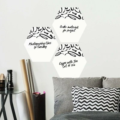Update a space with RoomMates Doodle Dry Erase Hexagon Peel and Stick Wall Decals. Simply peel and stick to any smooth, flat surface for instant results. Remove, reposition and reuse as often as needed. No sticky residue is left behind. Walls stay clean every time. Add personality to your walls today with RoomMates Wall Decals!